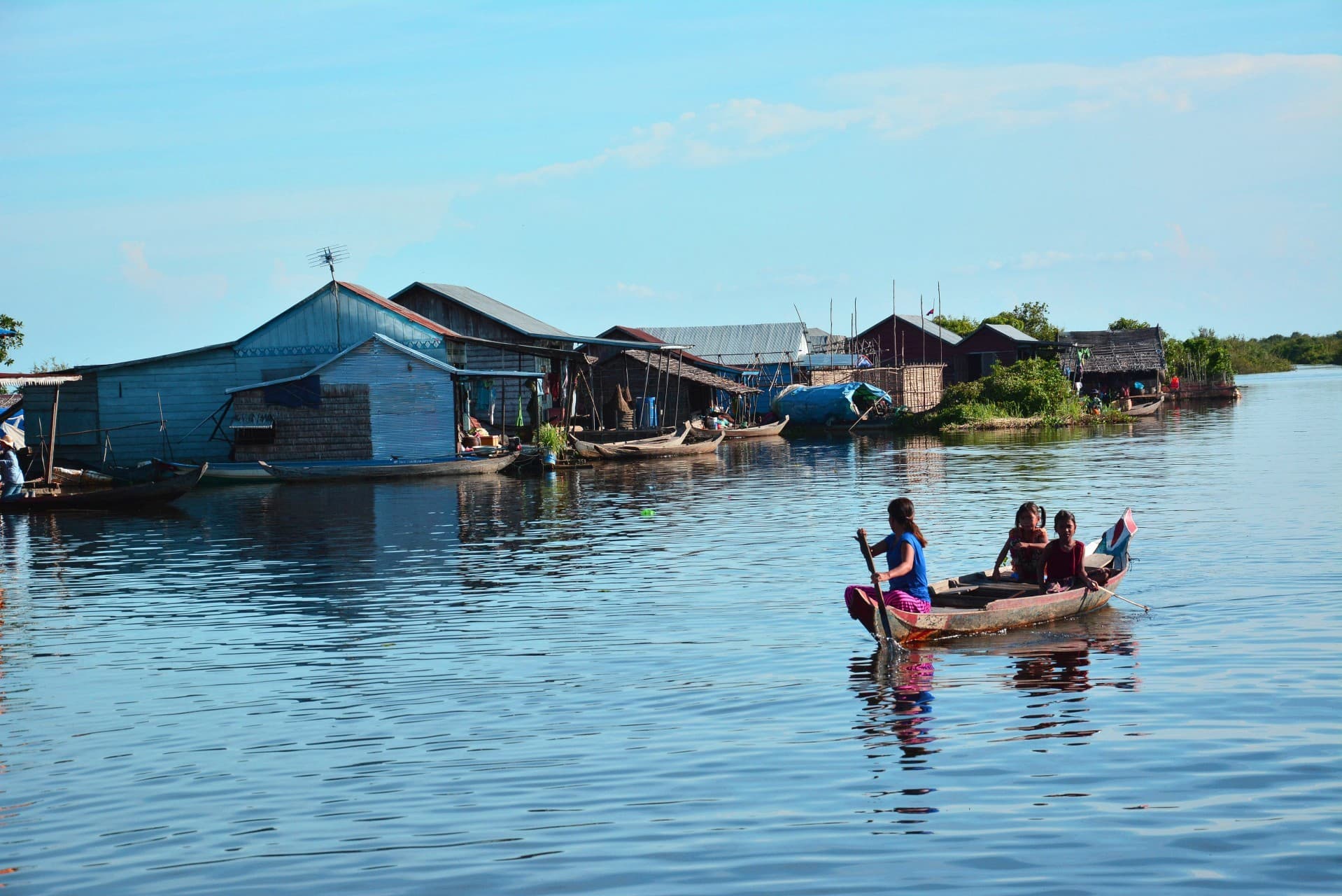 Nel pomeriggio escursione in barca sul Tonle Sap, il lago più grande del Sud-Est Asiatico che nella stagione delle piogge espande a dismisura le sue dimensioni irrigando i fertili campi di riso che nei secoli costituirono una delle principali ricchezze sulle quali si fondò il glorioso Impero dei Khmer. Oggi sulle rive del lago sono ubicati diversi villaggi di pescatori, generalmente appartenenti a minoranze etniche di diversa origine, che vivono in case di legno galleggianti sul fiume.